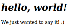 Just about every framework ever written has some kind of hello world example included, so it'd be pretty rude of us to break this tradition!
