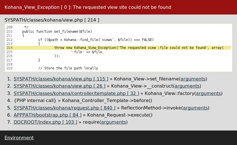 If we look at the error message we can see that the View library wasn't able to find our site template, probably because we haven't made it yet – doh!